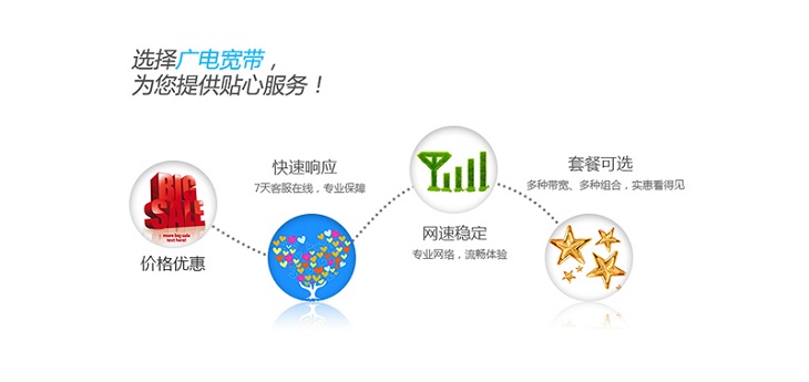 廣電寬帶--以速度和內容取勝。帶寬持續升級,步入百兆光速時代,以豐富多彩的內容,全力為用戶奉獻網絡高速優質、價格實惠的家庭寬帶服務產品。
